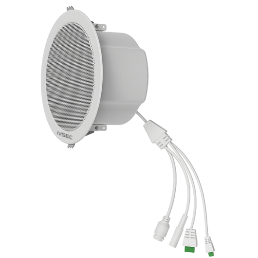 The iVSEC NS300YA is a compact, ceiling-mounted SIP speaker designed for indoor paging and broadcast applications. Built for commercial environments such as offices, schools, and retail spaces, it can operate as a standalone audio device or integrate with broader communication and security systems.